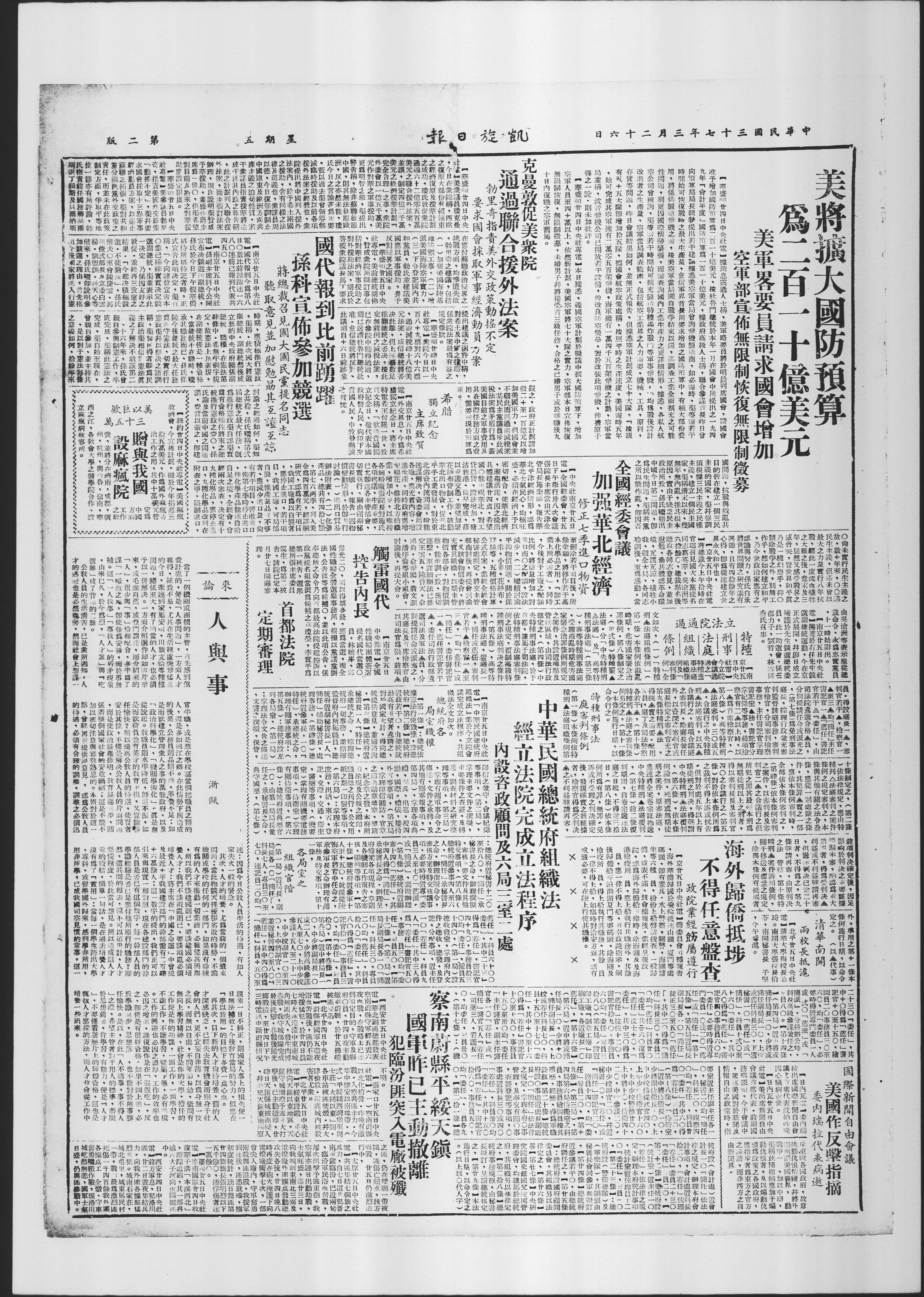 时间始可恢复战时之最大生产量,佥信军界首长所要求增加之国防预算中,有极大部份费