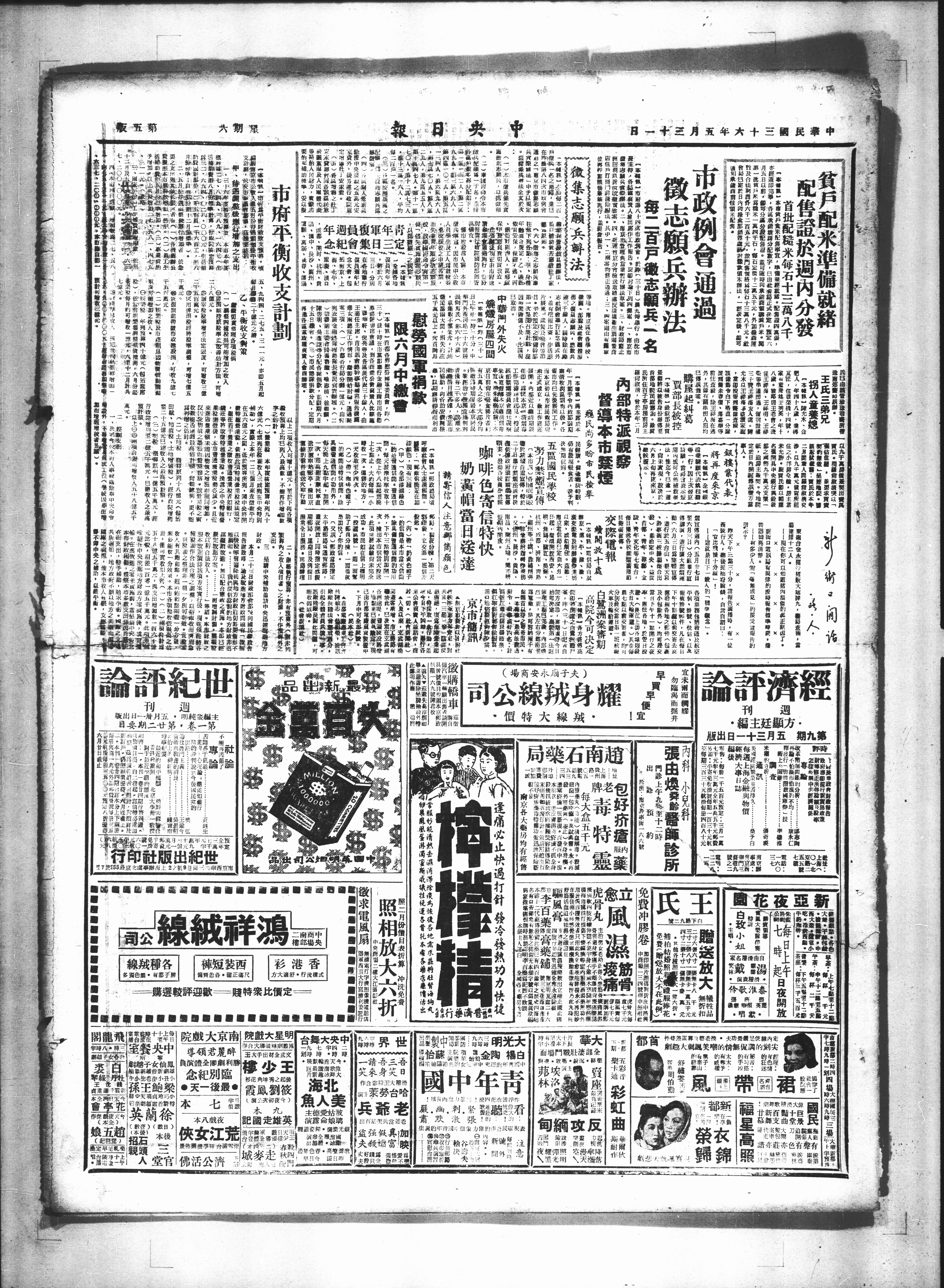 自使用牌照税經将税率調整, 二年五百万元。 屠宰税税增至法定限度, 房捐能持原车亚歌善估計 (一)鹏整種税捐可能增加 敬刃實络理各项税捐 乙、平衡收支策 每#二十元之。 五、九两四·二七五·三一元,