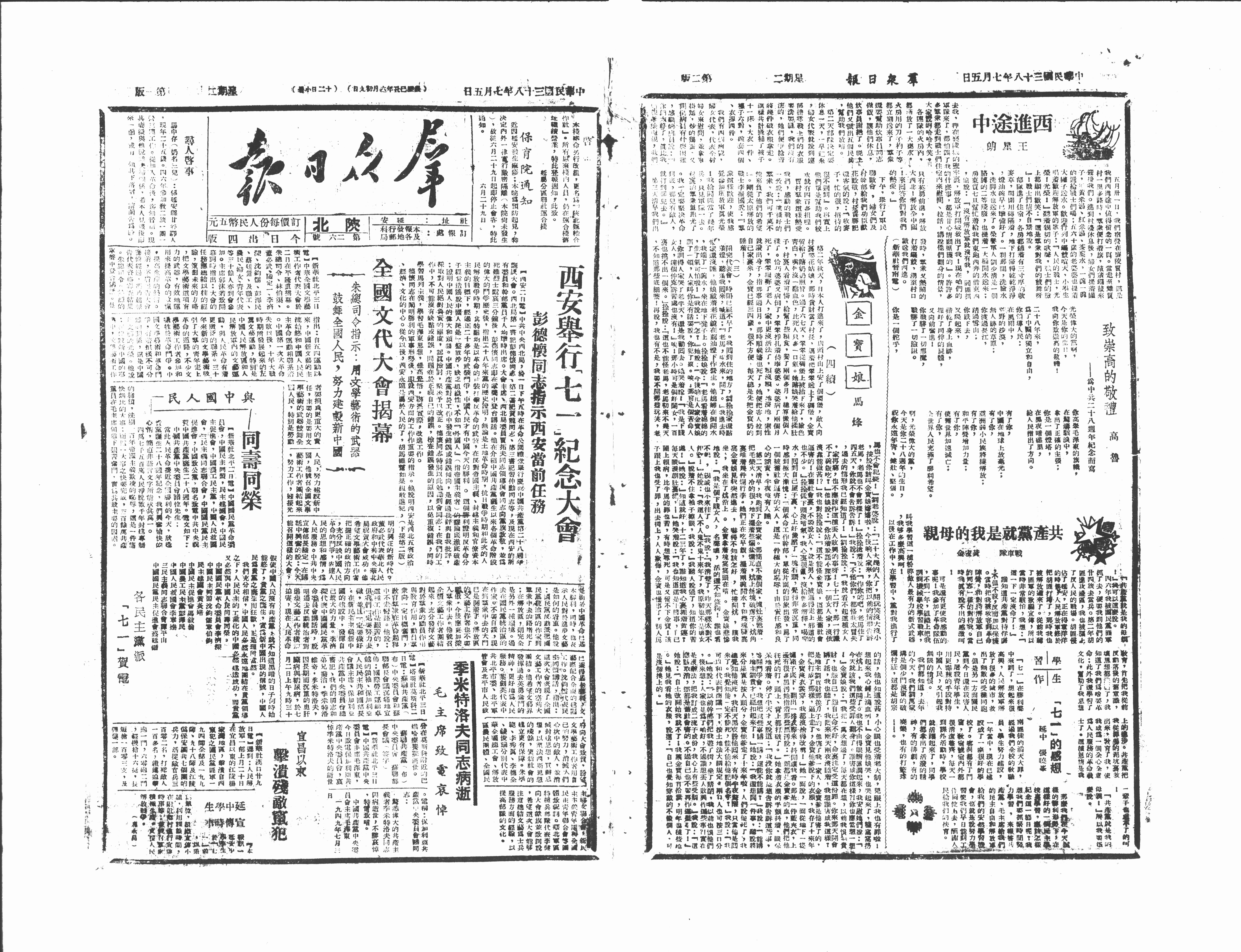 贺中国共产生二十八遇年。电文如下“·