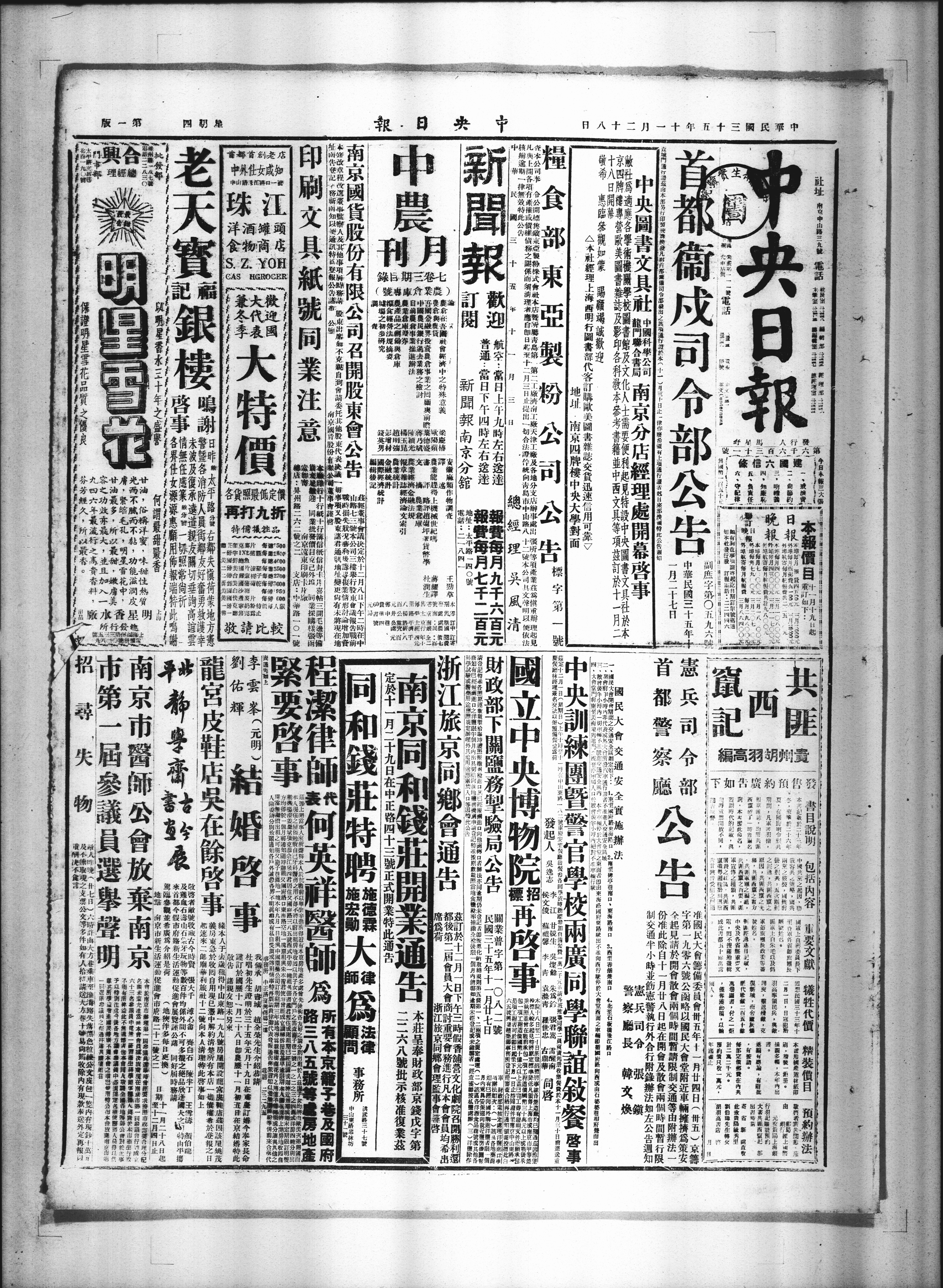 中央训练团暨警 兹定十二月一日(星期日)上午十时至十一时,在中山东路一八二号励志社餐厅,经理签名交款,以便预备餐位,为荷。 发起