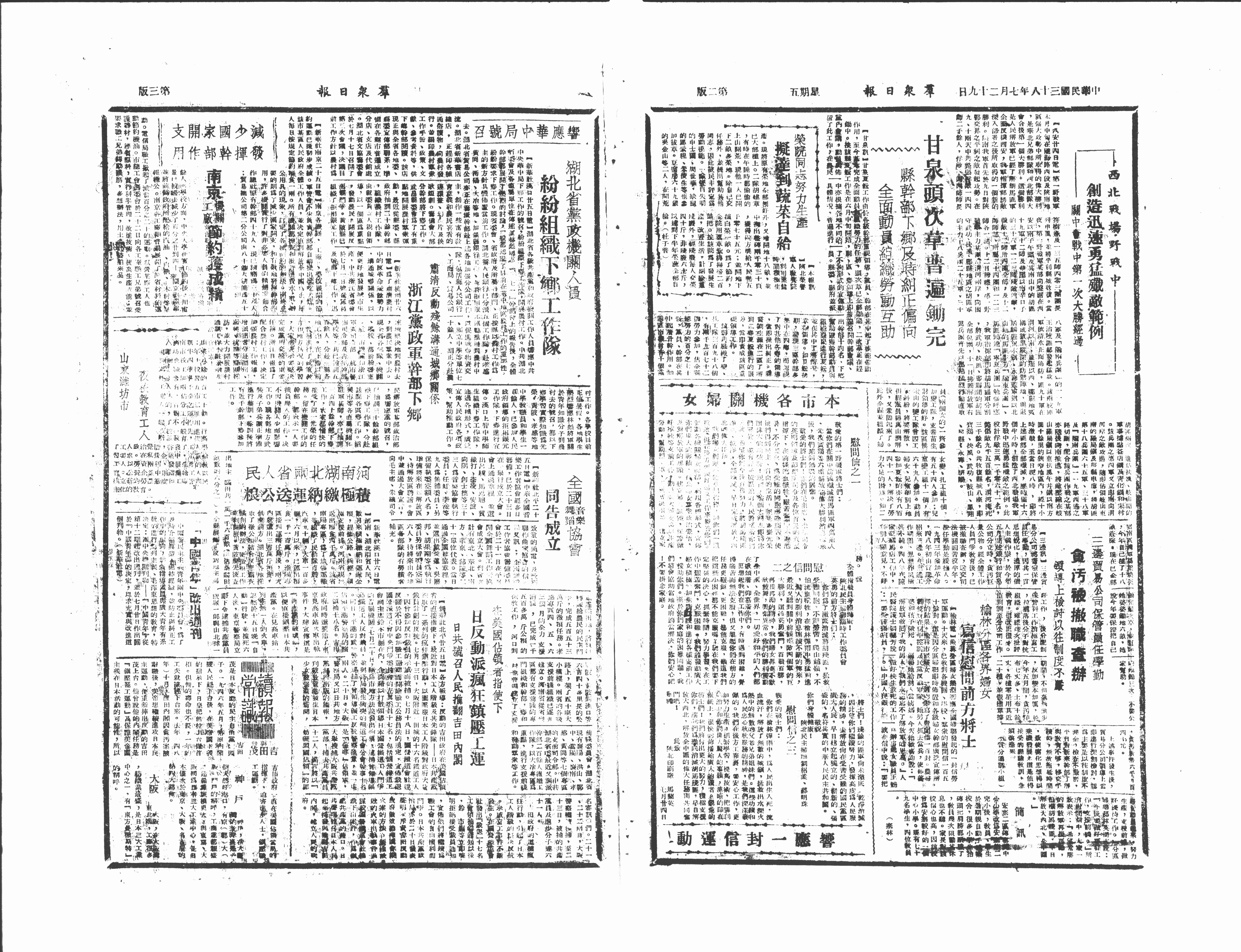 【甘泉訊】甘泉夏耘工作由于各級幹部重視領導,黨員,幹部在其中起了模範帶頭作用。