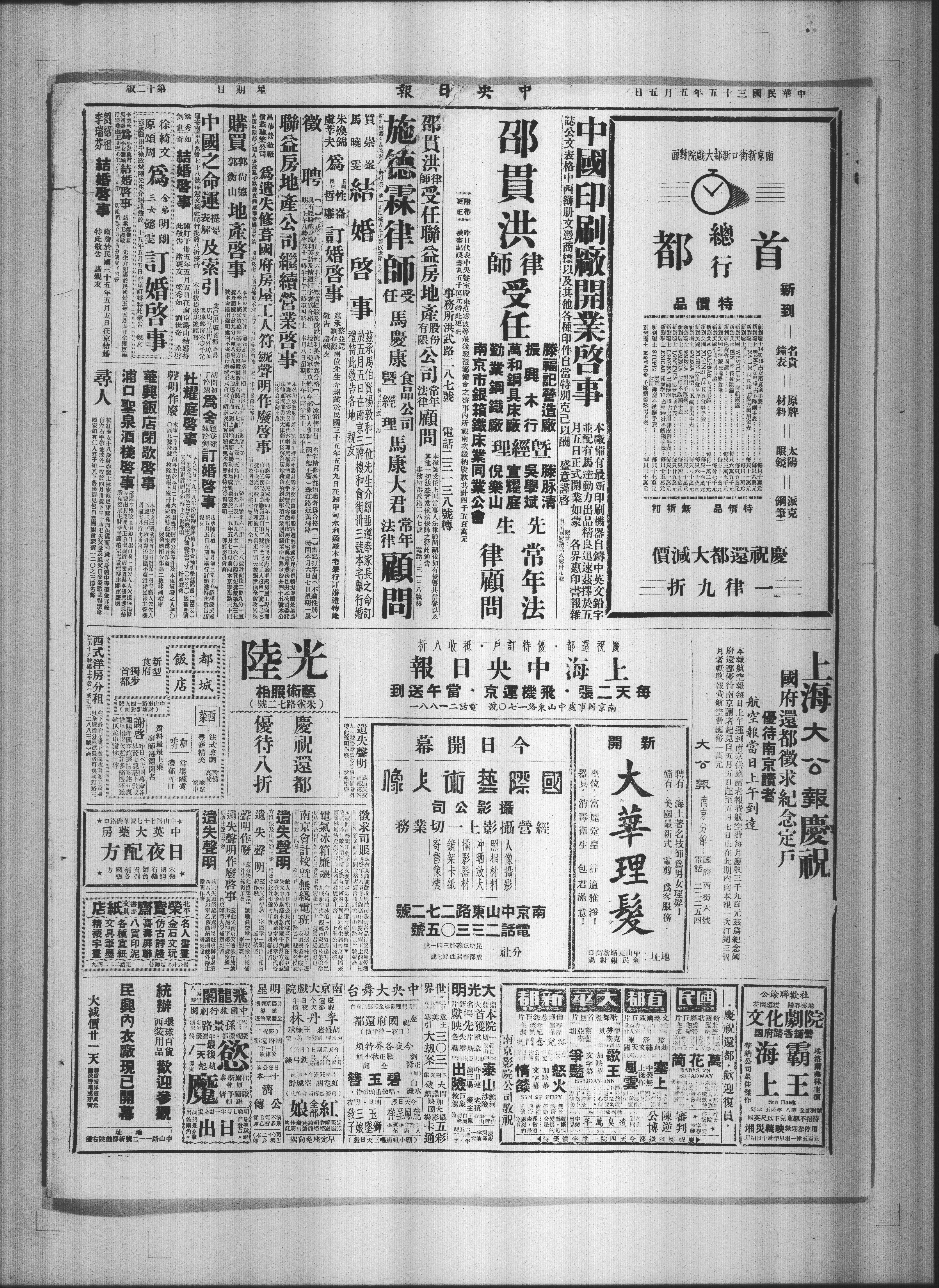 府还都优待南京读者起见自五月五日起至五月七日止在此期内向本