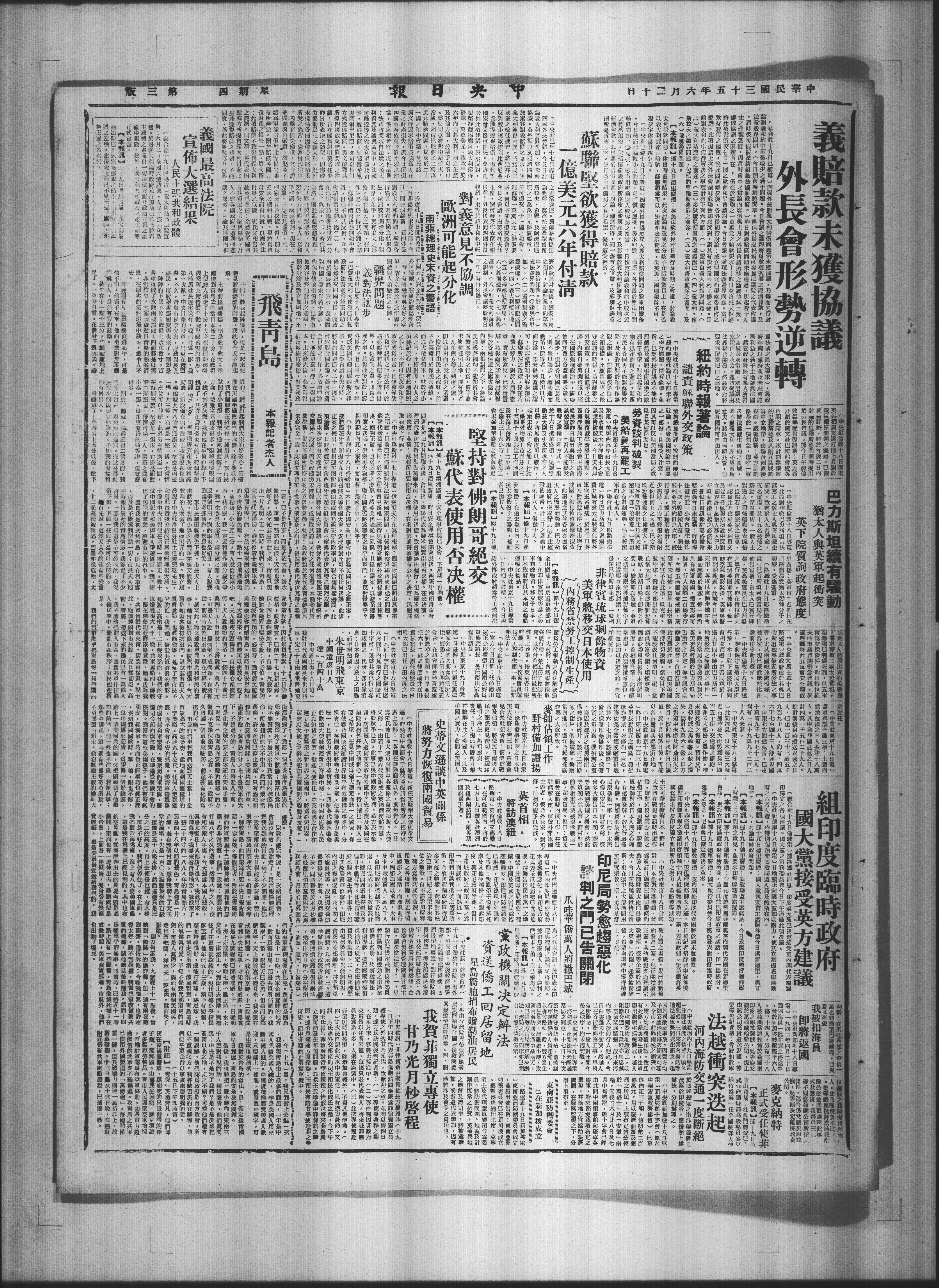 L中央社讯〕侨委会昨(十九)日邀集行政院、海外部、外交部、善后救济总署开会,讨论资遣南侨机工囘原居留地事宜。到行政院科长何侠民·海外部处长谢澄宇、外交部帮办黄廷英·善后救济总署科长何然棣、由侨委会侨务管理处长甘沄主席,议决办法如下:一、呈请行政院尽速准照侨务委员会前呈列回国投効之南洋侨机工名册,及资这办法,指专款,援照归国华侨复员补助之规定,从优捕助旅费及服装费。二、出国护照由侨务委员会先发证明书,会商外交部办理,并子豁免护照费,以示体恤。三·遣次办法由行政院善后救济署,援照遣送归侨复员办法,逸至出海口岸(分在广州油头、度门、上海集中)